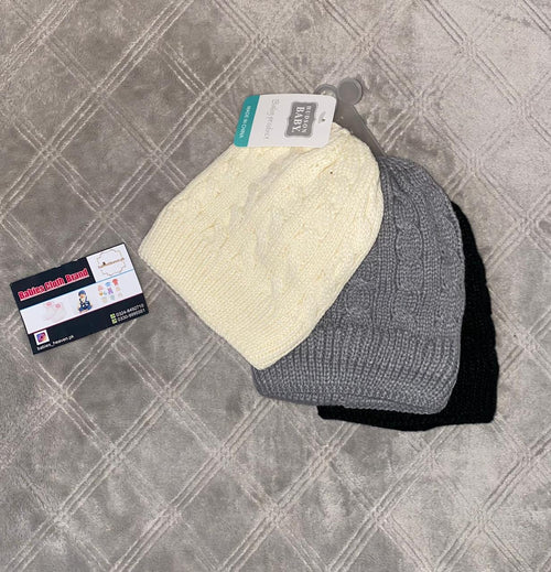 Baby Pack of 3 Wool Cap - Winter (Beige, Grey, Black)